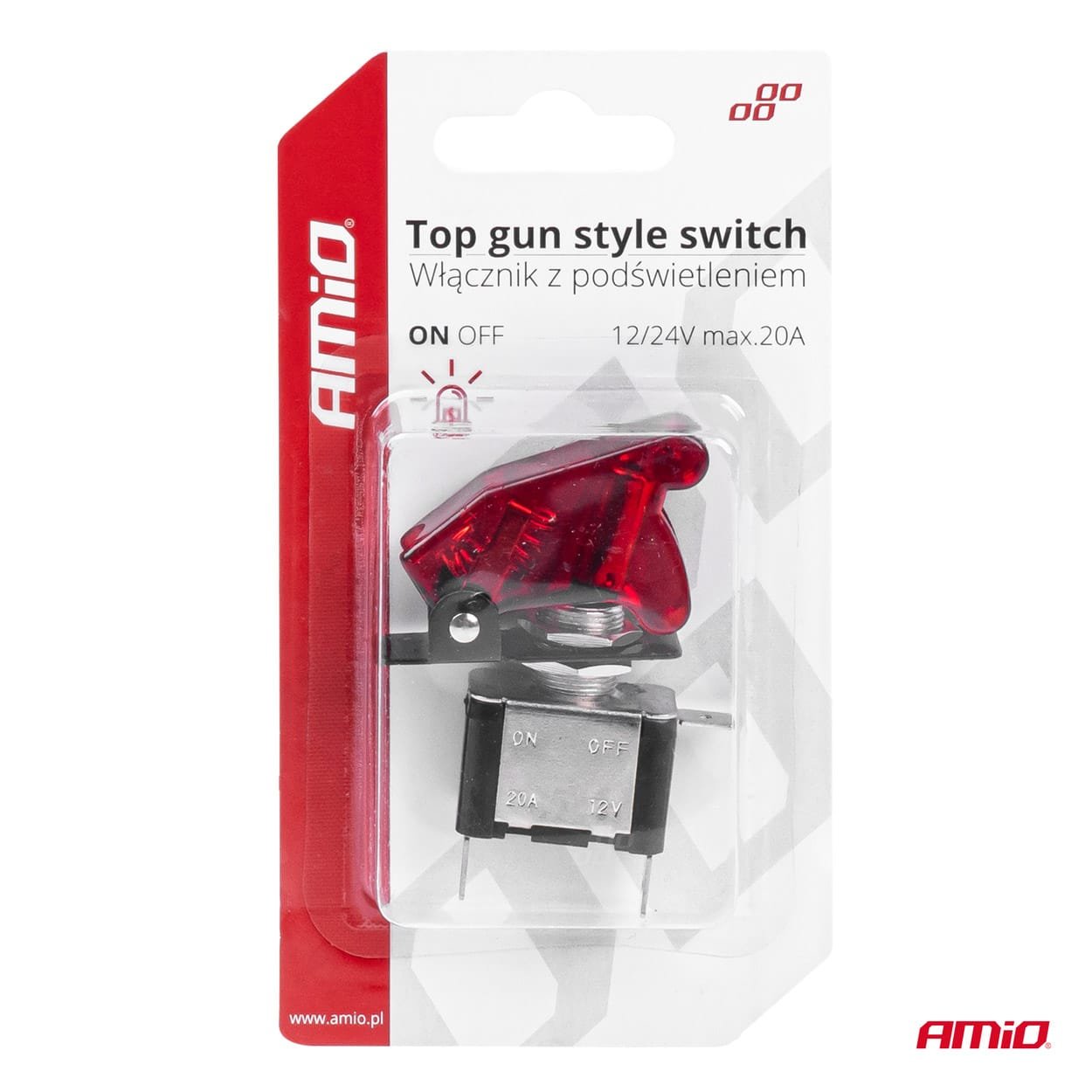 Comutator iluminat (intrerupator) cu protectie, destinatie auto, moto, ATV, SSV, Off-Road, model „TOP GUN”, tensiune 12V – 24V, culoare Rosie