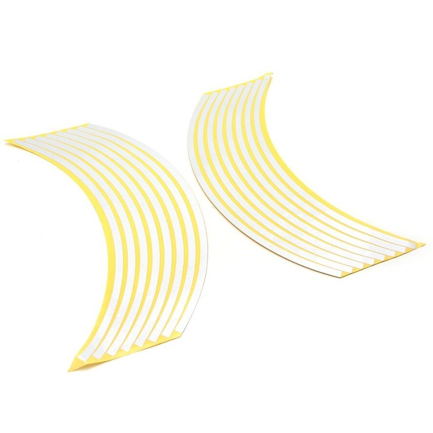 Setul este format din 16 segmente (arce de cerc) autoadezive care se lipesc pe buza jantei, formand un cerc complet.
