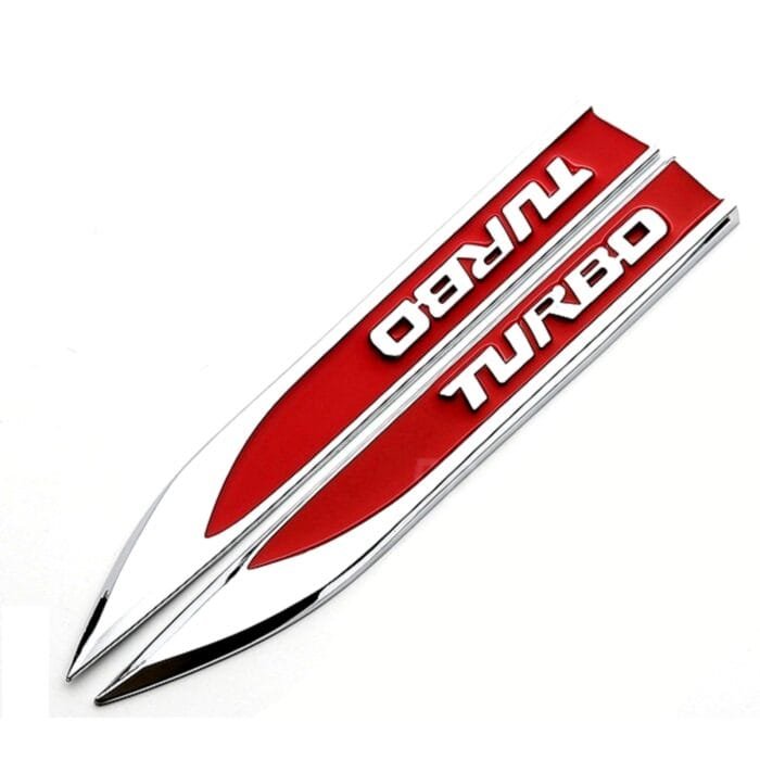 Set 2 embleme auto metalice TURBO, reliefate 3D, dimensiune 14.6 x 1,8 cm