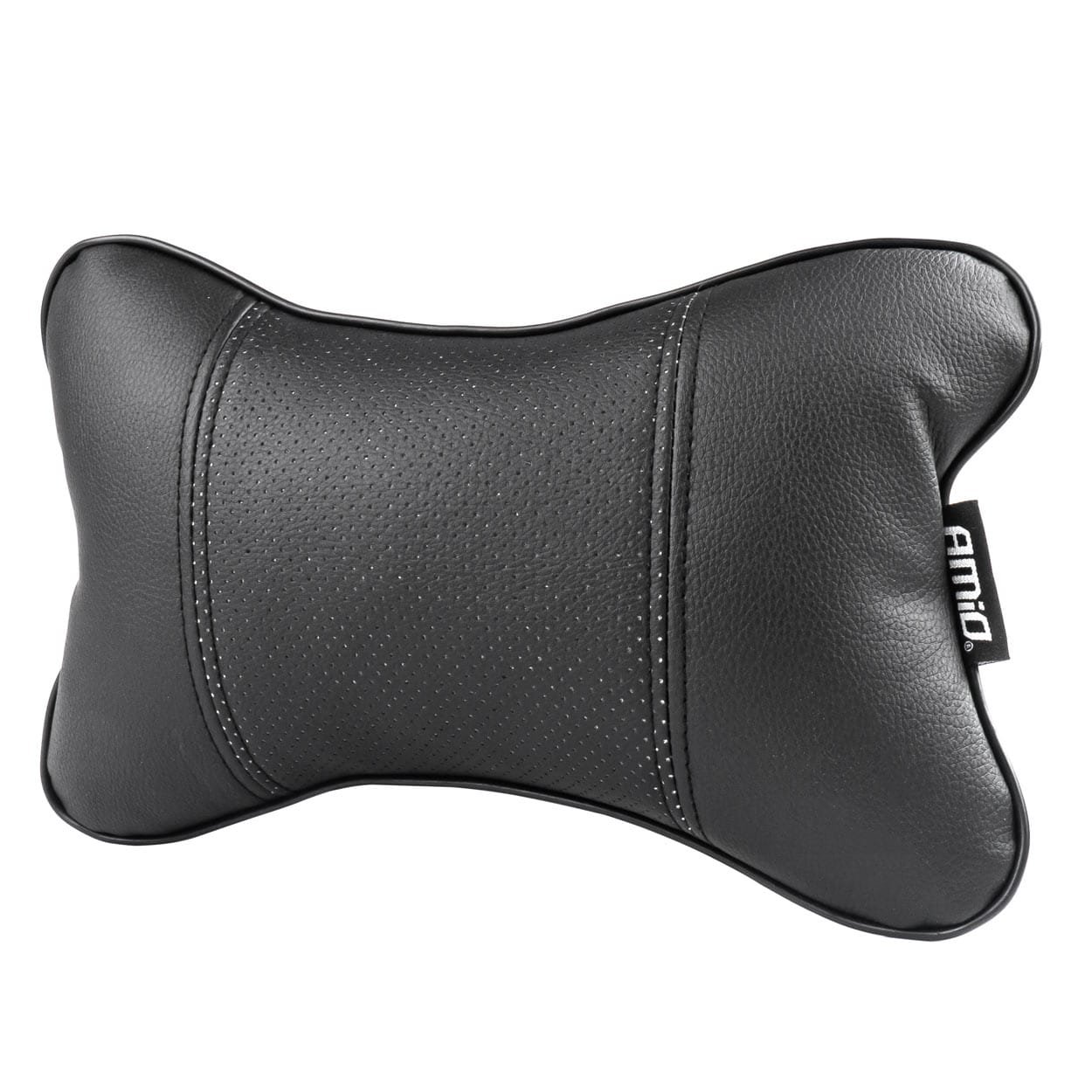 Set 2 perne pentru tetiere auto, marca AMIO, pentru sustinere gat din piele ecologica, culoare NEGRU