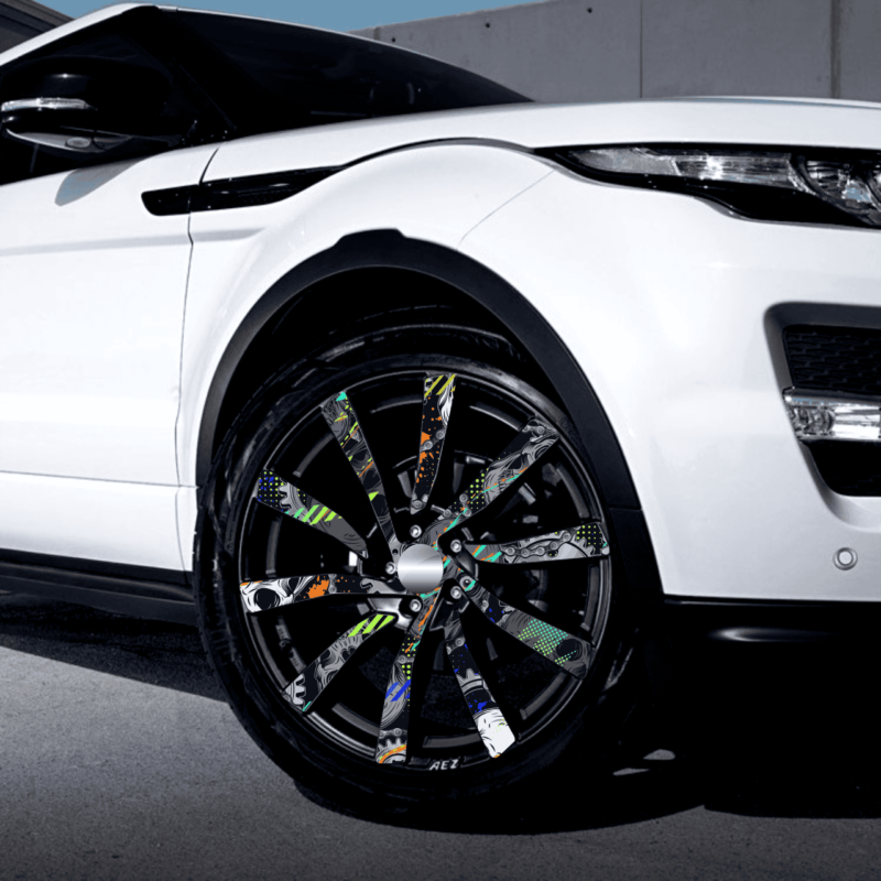 Set Folii Auto pentru Colantare Jante, un produs de inalta calitate imprimat cu Solventi Outdoor, rezistenta indelungata la exterior, dedicat pasionatilor de tuning, competitii auto, show-uri auto. Dimensiunea produsului (Ø 60 cm) este suficienta pentru a colanta jante de pana la 21″.